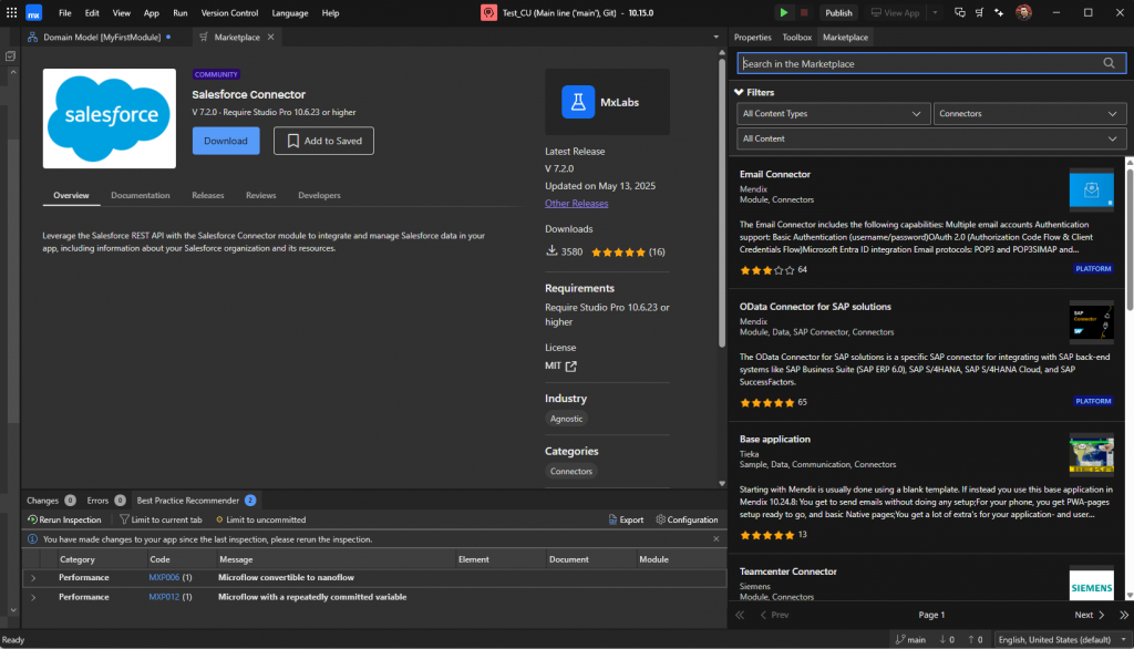 Mendix bietet eine Vielzahl vorkonfigurierter Konnektoren – etwa zu SAP, Salesforce, Datenbanken oder REST-/SOAP-APIs. Dadurch werden Integrationen mit bestehenden Systemen erheblich vereinfacht und beschleunigt. Individuelle Schnittstellen lassen sich ebenfalls flexibel anlegen, was eine reibungslose Anbindung an komplexe IT-Landschaften ermöglicht.